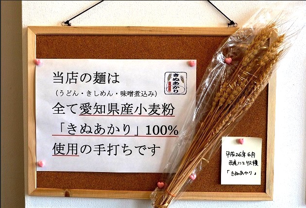 ・使用小麦粉は愛知県西尾市産「きぬあかり」100%使用 (栽培期間中除草剤不使用)