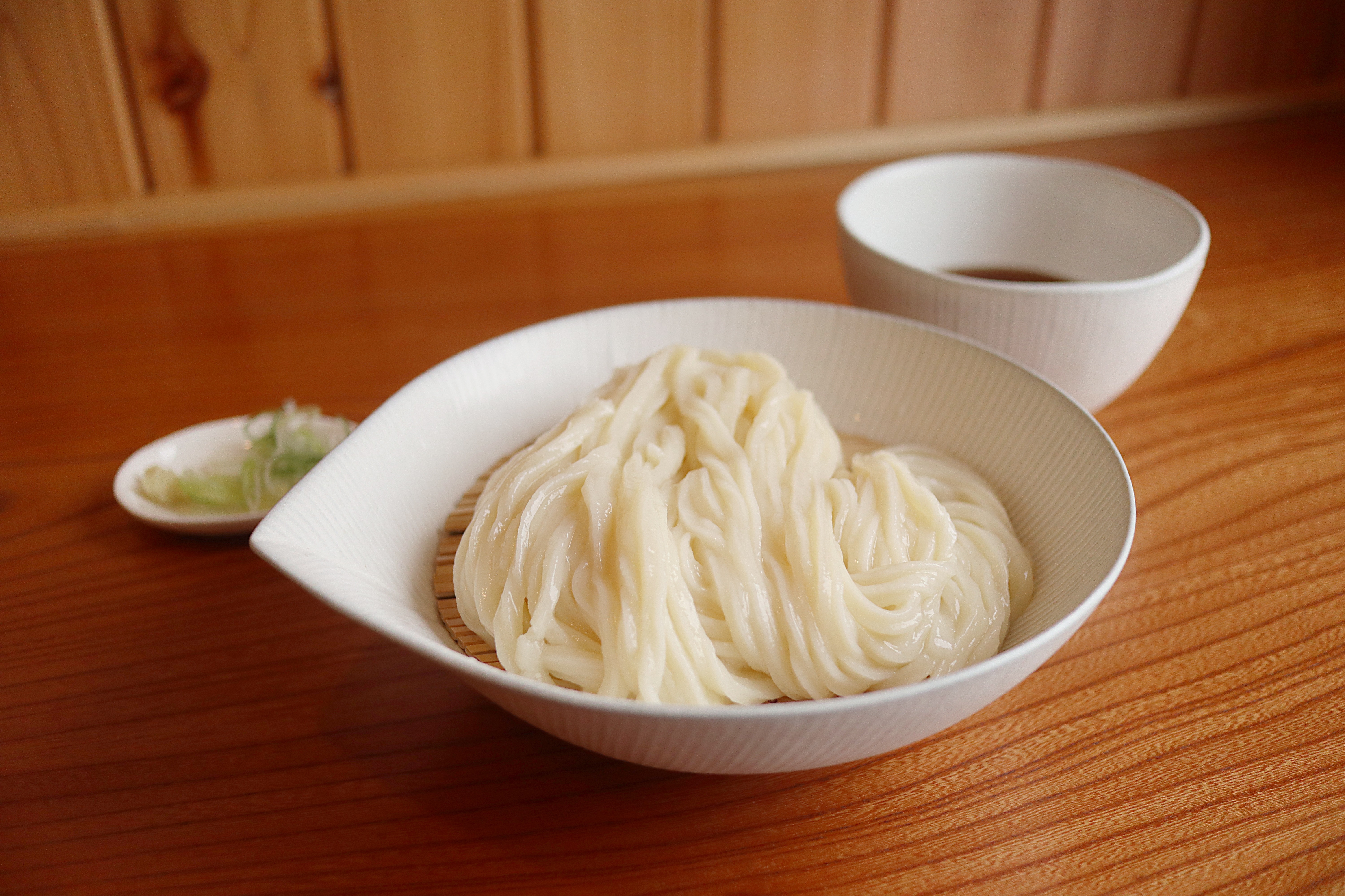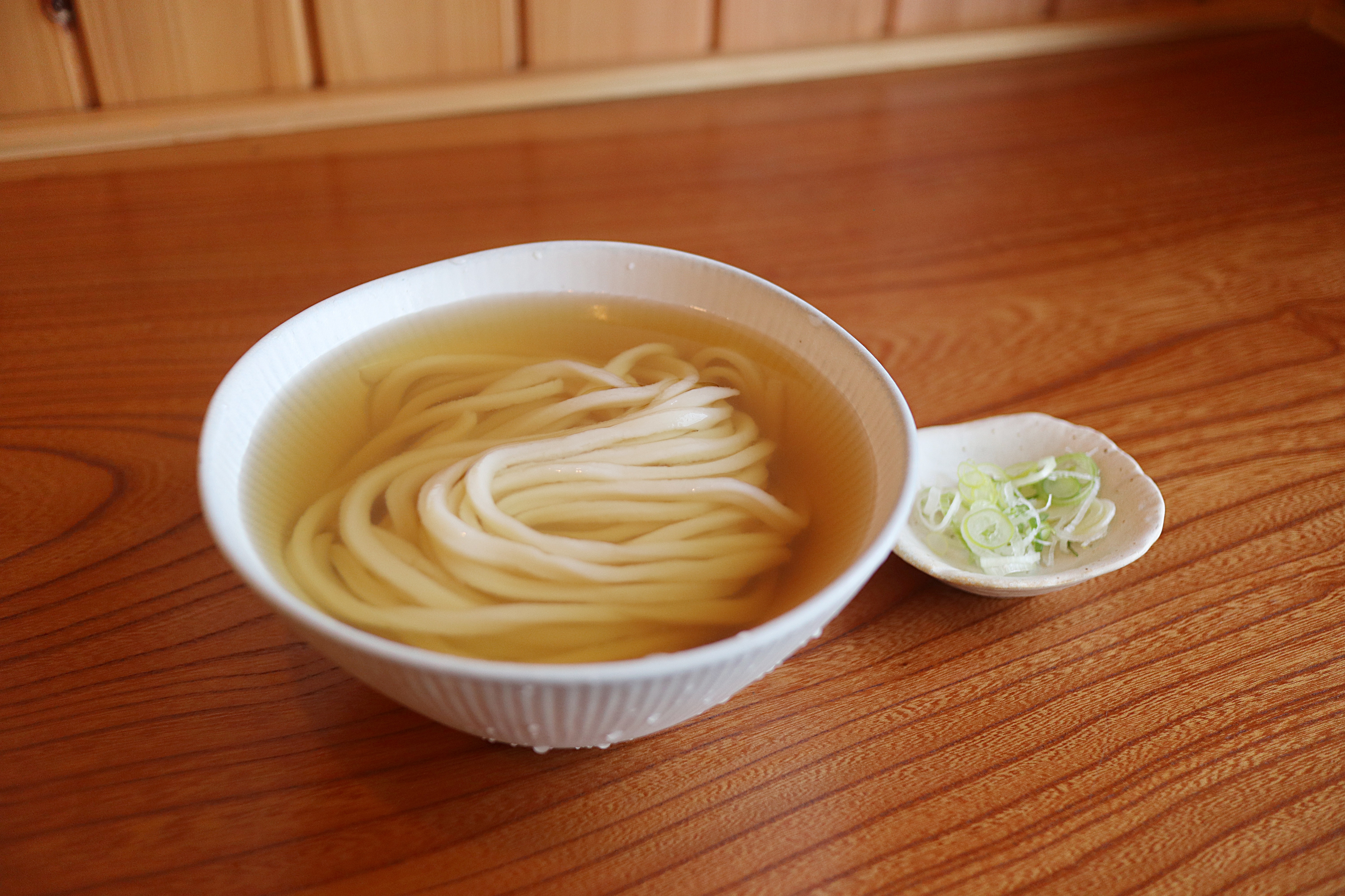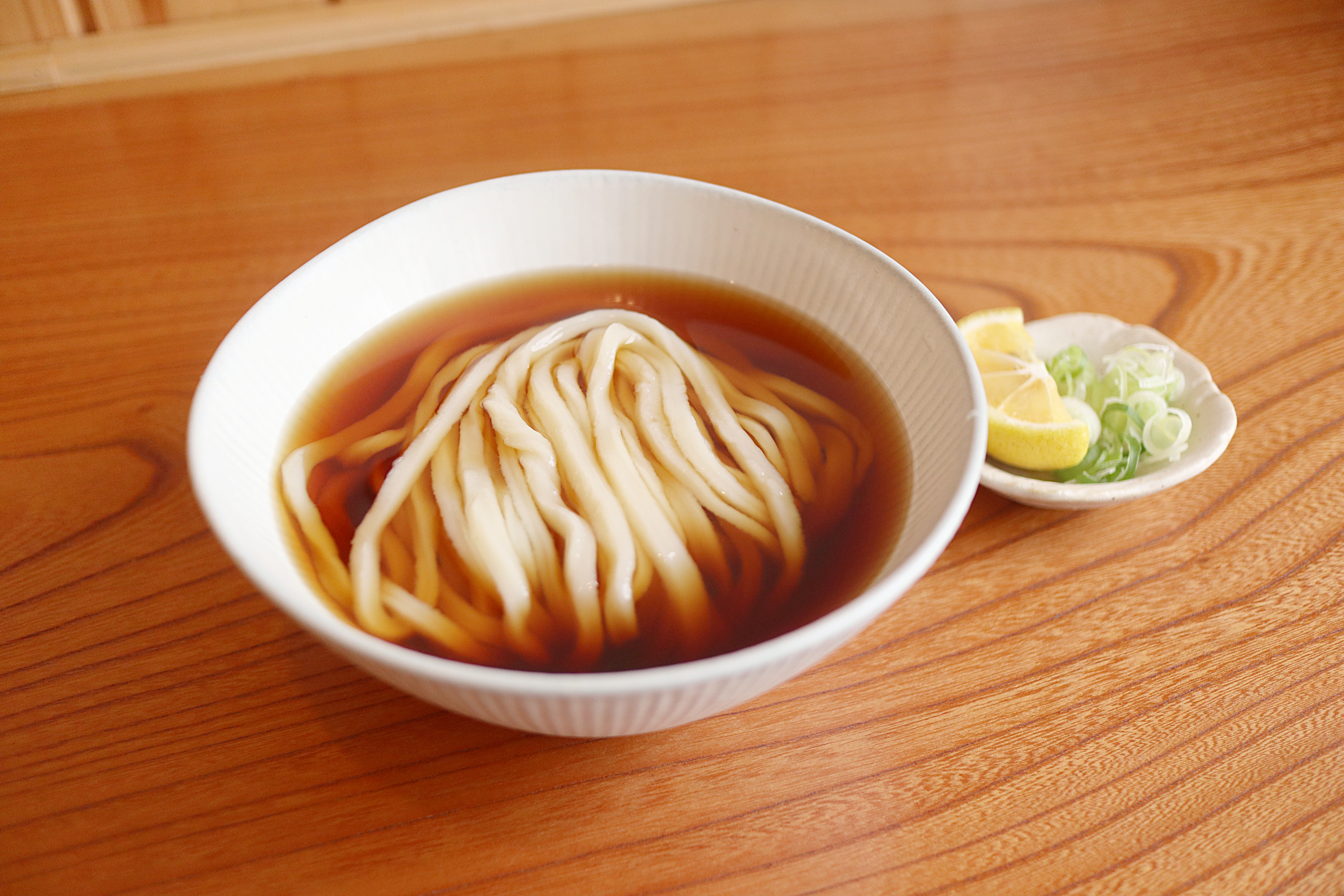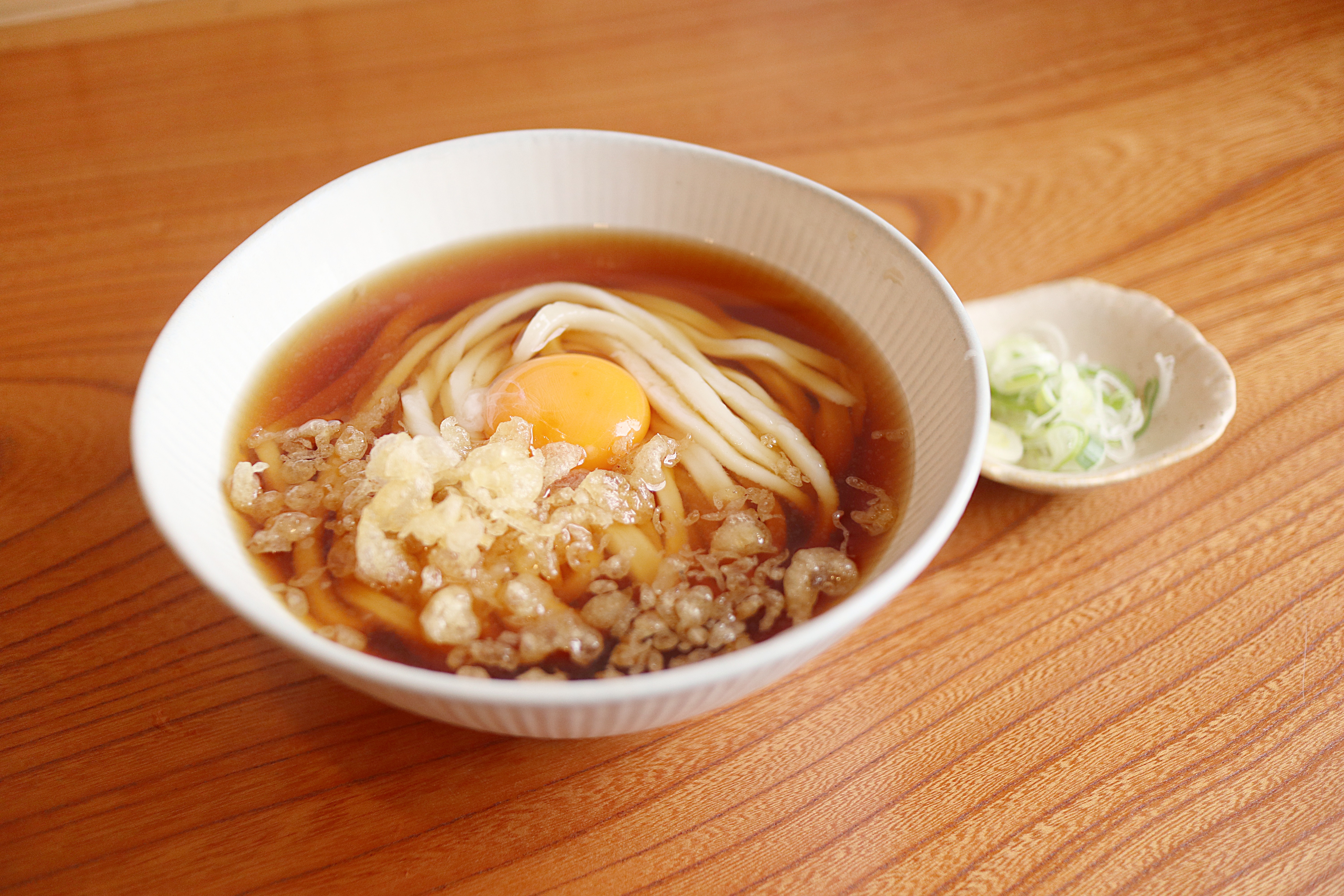 薄口醤油使用の出汁がかかっています。メニューの中で一番出汁感がわかります。先ずはネギを入れずにそのままどうぞ