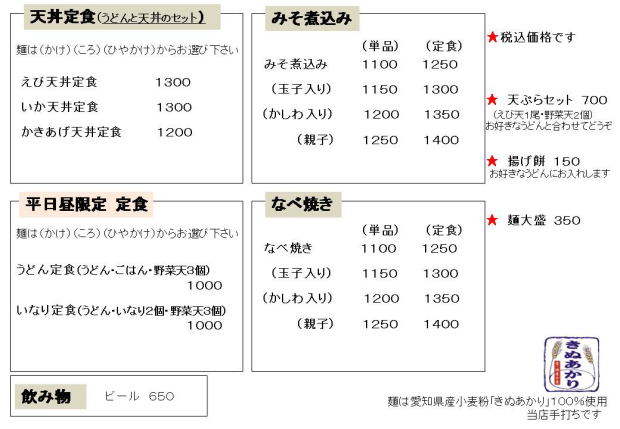 〒470-1116 愛知県豊明市新田町吉池26-2 TEL.0562-93-6828 営業時間 11:00〜14:00 17:00〜19:30 座席数:24席 座敷・テーブル 定休日:土曜日・金曜日(夜)